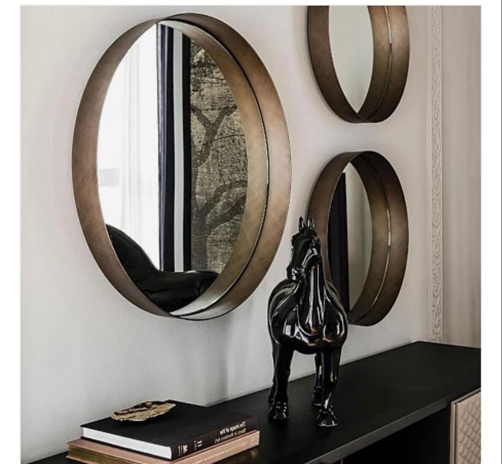 Зеркало в тонкой алюминиевой раме , диаметр 80 см . Не световое . Можно заказать дополнительные функции .